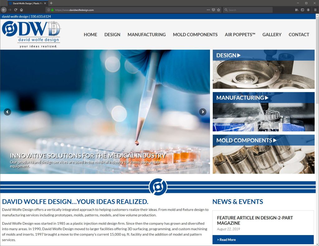 David Wolfed Design (DWD) of Akron, Ohio and WebRiver have recently partnered on the new website for the DWD, www.davidwolfedesign.com. The new website, based on responsive design is optimized for mobile, tablet and desktop and features a comprehensive overview of the company’s products and services.