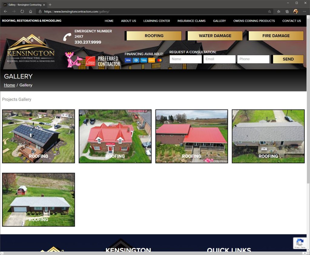 Kensington Contracting and WebRiver have launched a brand new website for the company: www.kensingtoncontractors.com – the website, based on the WordPress platform provides visitors with in-depth knowledge on roof repair, fire damage repair, water damage repair and much more. WebRiver provides monthly content development in the form of informational articles to help educate website visitors on various topics related to home repair.